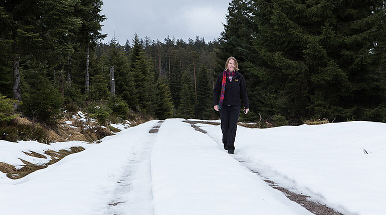 Anschließend geht es auf demselben Weg zurück zum Schurmsee Abzweig und links hoch zur Schurmseehöhe. Damit wechseln wir auf einen steil ansteigenden Pfad. 250 Meter weiter biegen wir beim Wegweiser Schurm scharf links ab und folgen der blauen Raute weiter ansteigend bis auf einen Forstweg. Dort halten wir uns erneut links, passieren das Vordere Langeck und erreichen ein kurzes Stück weiter die Schurmseehöhe.