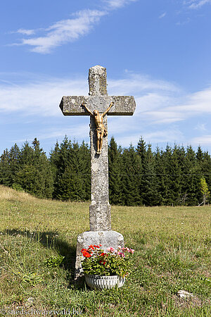 Anschließend geht es auf dem Hochschwarzwälder Hirtenpfad über »Klausenhof« zum Wegweiser Am Hohspirn. Auf diesem Abschnitt verläuft der Weg eine ganze Weile entlang eines hohen Zauns. Laut einem Zettel soll er verhindern, dass das Wild vom Fürstenbergischen Jagdrevier in das angrenzende Revier gelangt. Als Wanderer können wir hier nur hoffen, dass sich die Verantwortlichen bald eines Besseren besinnen, sodass das Wild wieder ungestört durch die Wälder streifen kann.